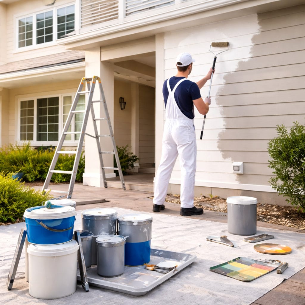 Expert home exterior painting using premium exterior house paint for smooth, even coverage.